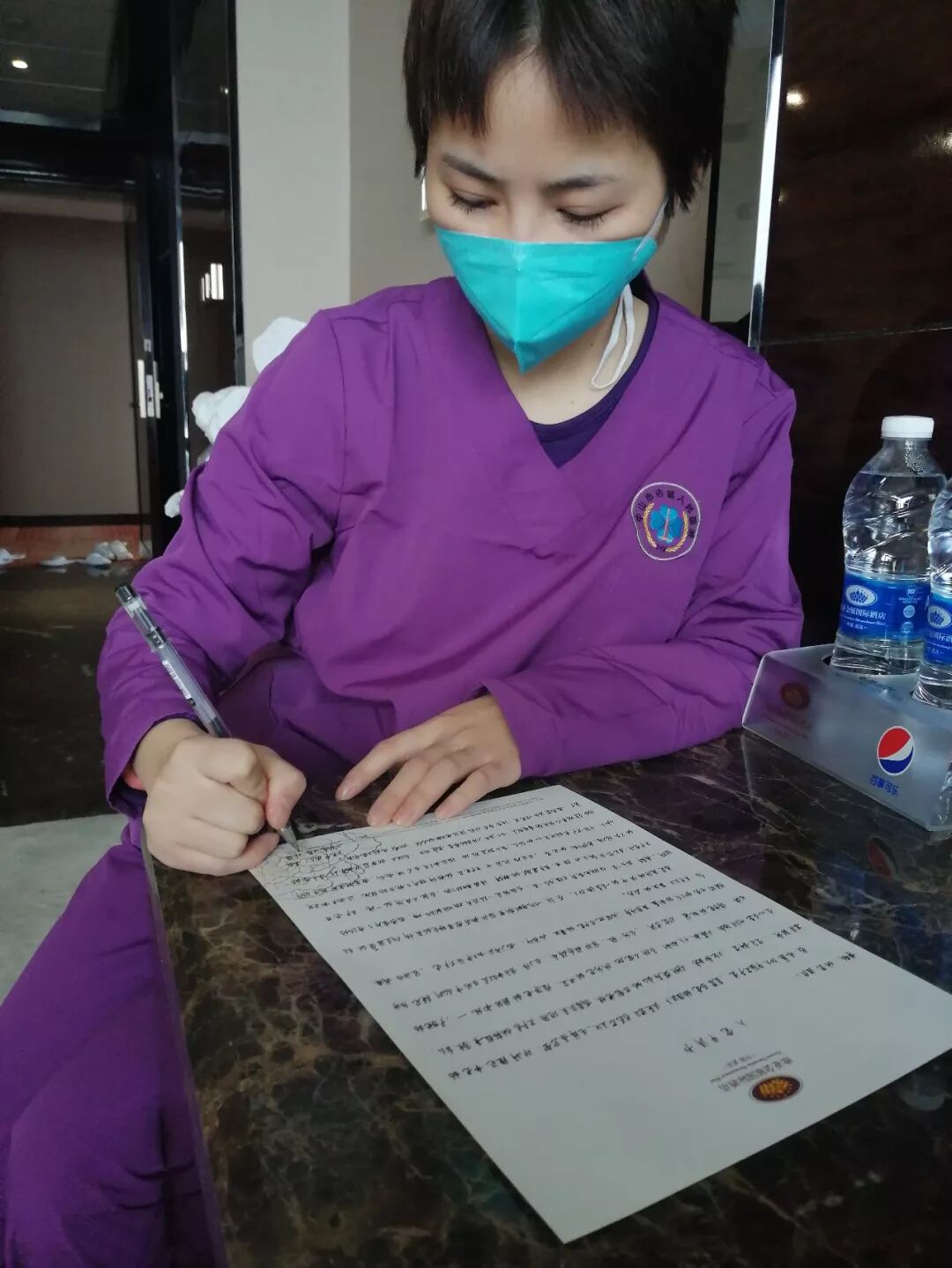 今日,古镇人民医院党委欣喜地收到一封来自我院参与驰援武汉疫情最前线战斗的呼吸内科护士李驿的入党申请书。在酒店信笺纸上,她写了特殊的《入党申请书》,在申请书上她这样写道:“我志愿加入中国共产党。我有幸成为一名到湖北前线参与支援的一员,在面对这场没有硝烟的战场上,我身边的共产党员,无怨无悔的主动担当、勇于奉献的精神,深深触动了我!在抗击疫情的第一线,共产党党员的不畏艰难,勇于向前的大无畏精神,让我更加坚定了加入中国共产党的决心和信念!前方就是战场,祖国和人民在召唤我们,我要把参加此次战斗作为锻炼意志和作风的重要机会,我要成为一名抗击新型冠状病毒的勇士,我渴望成为一名光荣的共产党员,请党组织对我进行多方面的考验,批准我的入党申请。”