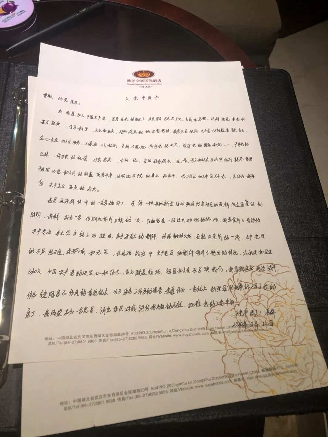 【抗疫】一份特殊的入党申请书 ——写在酒店信笺上的申请书