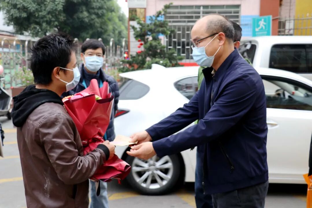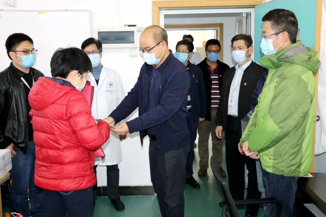 2月12日下午,我镇党委副书记刘剑亮、镇党委委员副镇长崔超文在院领导的陪同下慰问我院援助武汉医务人员李驿、吴晶晶家属,镇领导代表政府为他们送上鲜花、慰问金和慰问品。