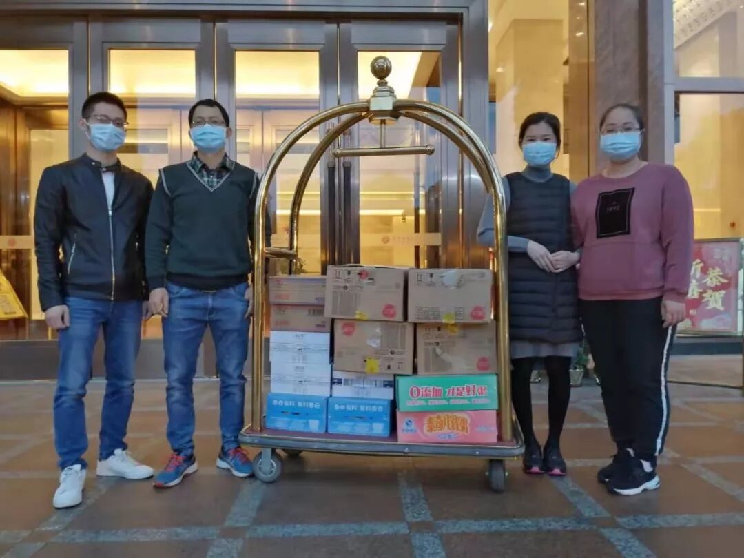 2月14日下午,医院为支援市二院医疗队员们送去医疗防护物资和生活用品