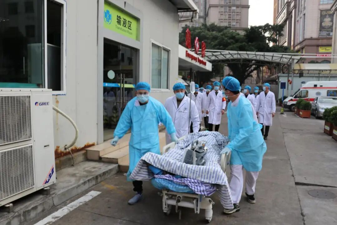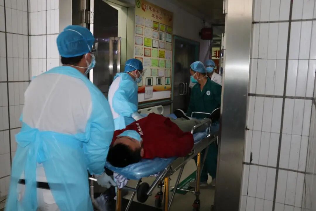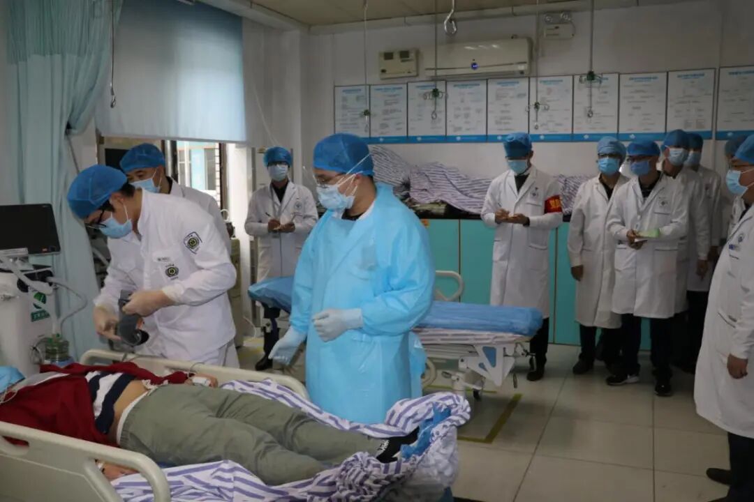 演练由院党委书记、院长彭文标宣布开始。救护车接回一名不明流行病学史的外伤昏迷男性患者,生命体征平稳。急诊科医生对该患者行咽拭子采样送检,根据病情请各科会诊,并对会诊医生指引了防护级别。而后患者从急诊科疑似病例通道运送到放射科。