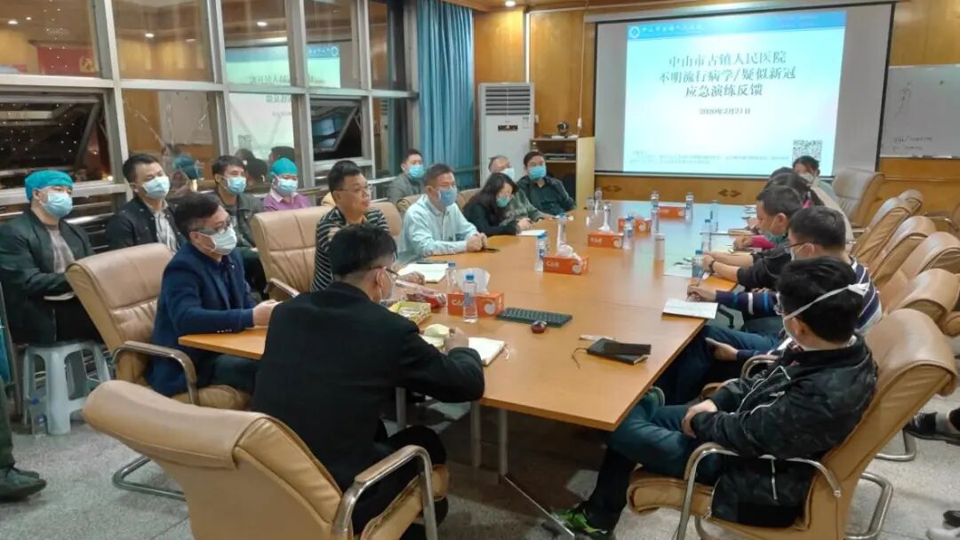 随着中山“复工潮”的到来,医院患者逐渐增多。为检验我院不明流行病学史或“新冠”疑似患者的接诊流程,2月21日下午,我院举办了“新冠”疫情应急处置模拟演练,古医“新冠”疫情防控指挥部成员及相关科室参加。