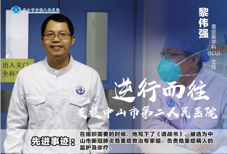 作为重症监护室负责人,有义不容辞的责任到抗疫第一线,家人支持,使我更加坚决投入到抗疫中去。在中山市第二人民医院抗疫期间,值班需24小时上班,一刻也不敢放松。虽然很累,但是看到病人由危转安,渐渐好转,感到甚是欣慰和值得。
