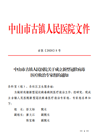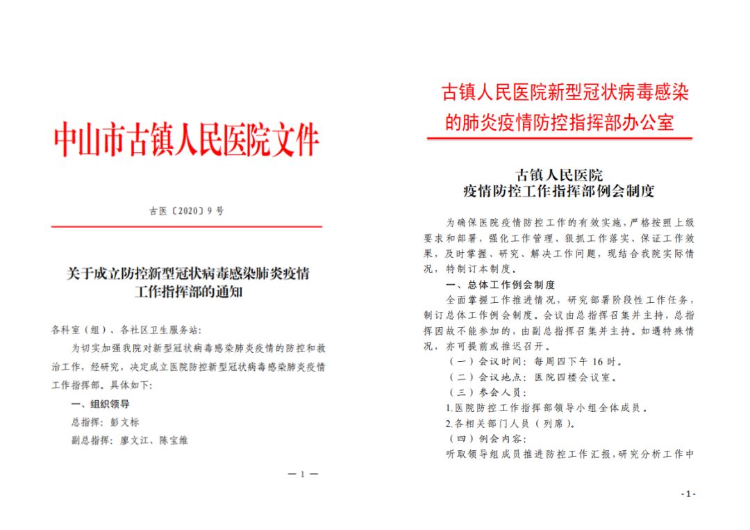 古医新冠肺炎疫情防控工作指挥部!