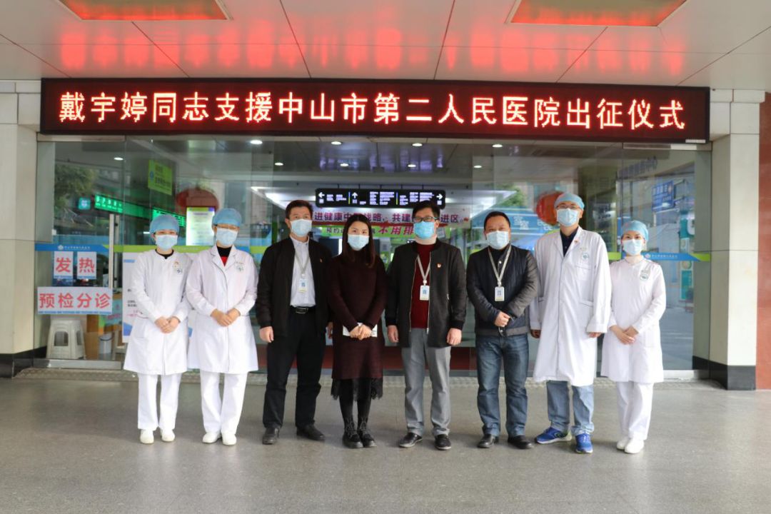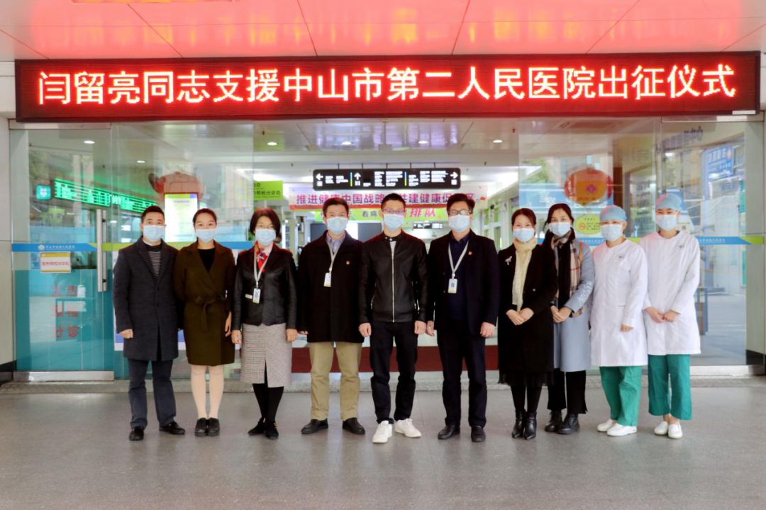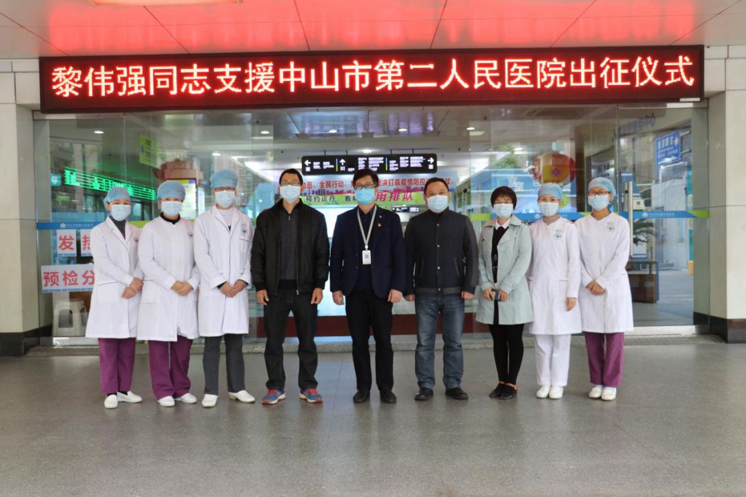 2月21日上午,院党委书记、院长彭文标带领党办、党支部、护理部等部门负责人慰问支援中山市第二人民医院医疗队队员。