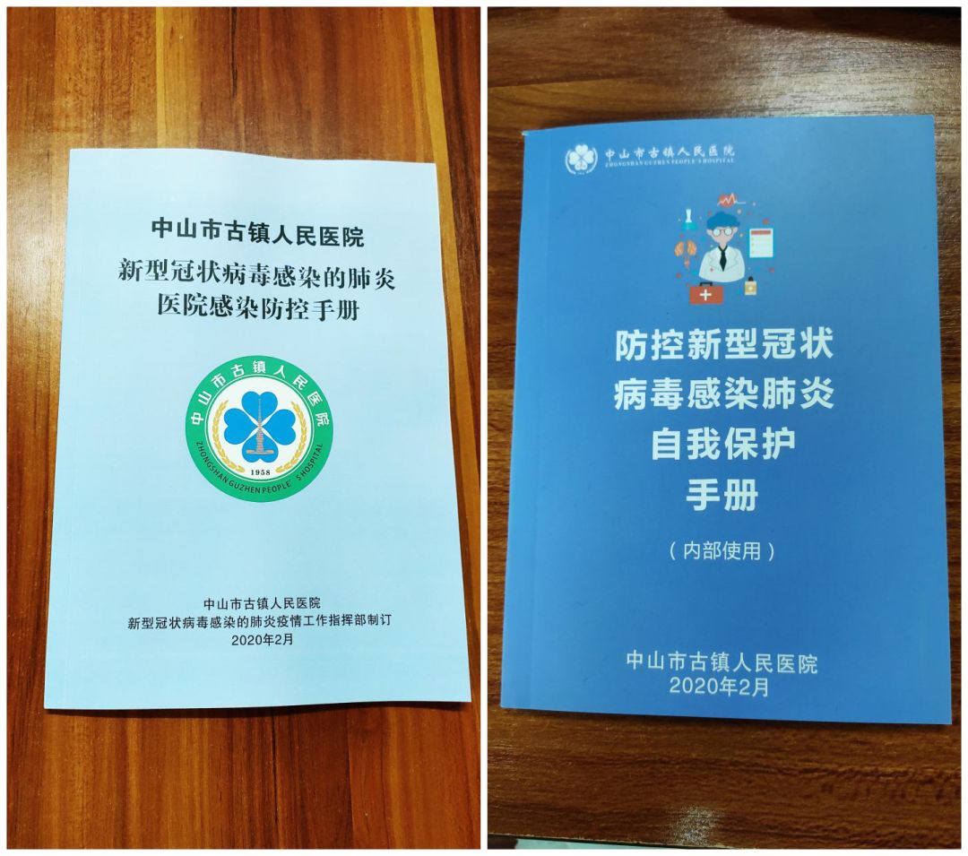 指挥部编印《古医新型冠状病毒感染的肺炎感染防控手册》《防控新型冠状病毒感染肺炎自我保护手册》并下发至各科室。本工具书实用性强,要求全院医护人员认真研读学习。