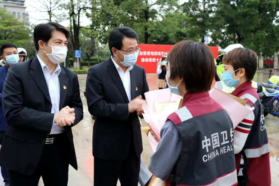 在“古镇镇援鄂抗疫英雄先进事迹报告会”上,镇领导匡志、阮志力代表镇党委、政府和全镇人民向圆满完成援鄂抗疫医疗任务的英雄们致以最崇高的敬意,并向他们的家属表示最诚挚的问候。