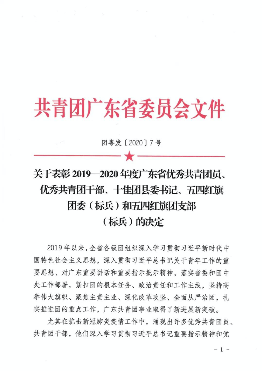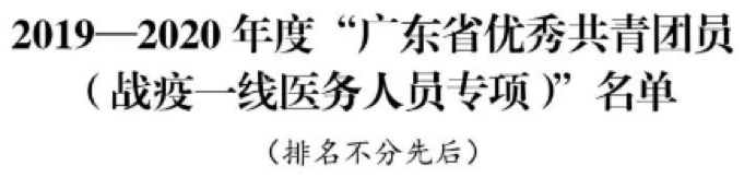 近日,共青团广东省委员会下发了《广东省优秀共青团员、优秀共青团干部、十佳团县委书记、五四红旗团委(标兵)和五四红旗团支部(标兵)的决定》,我院支援武汉的护士李驿上榜!