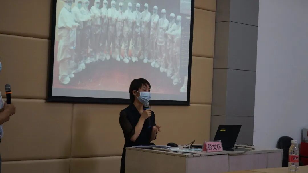 适逢护士节前夕,我院支援武汉方舱医院吴晶晶、李驿也来到了培训现场,分享了自己驰援武汉的心理历程:她们作为一名护士,在国家需要的时候,没有丝毫犹豫,迎难而上,这是作为一名护理人的决心。