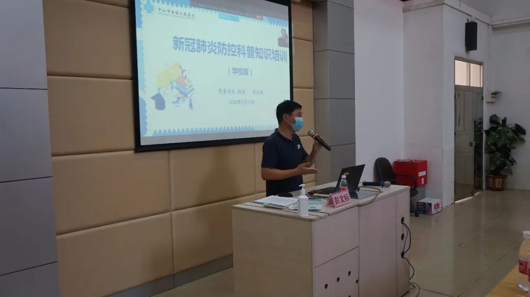 随着古镇镇各中小学陆续复课,为确保中小学生顺利安全入校,做好校园防控工作,保障师生员工身体健康和生命安全,协助学校复学复课工作有序开展,5月11日下午,我院党委书记、院长彭文标带队,以主会场现场授课、分会场线上培训的形式,在古镇镇初级中学开展了一场生动的新冠肺炎防控科普培训,以此加强学生们的科学防控。