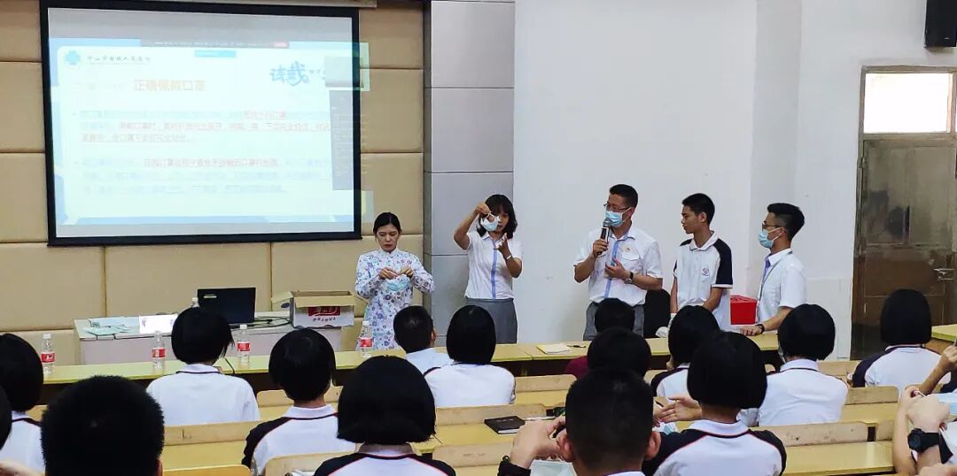 课堂上,彭院长以实战的方式为师生们科普了七步洗手法、普通口罩、KN95口罩的区别与佩戴方式等。